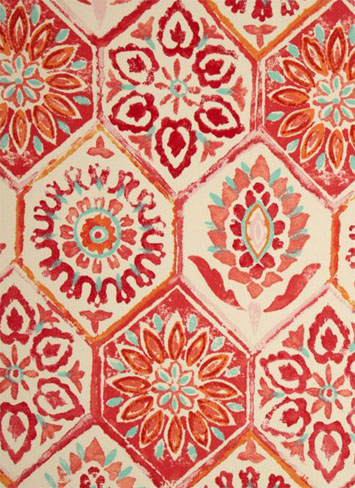 This pretty fabric looks hand-painted with a large pattern of flowers in pink, orange, aqua against a white background. 137cm. IN STOCK FOR SPEEDY DELIVERY.